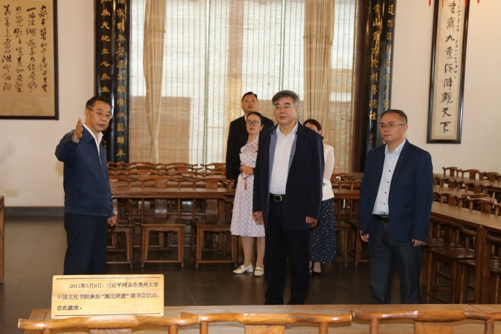 2024年5月16日至17日贵州大学“提升国际化办学水平做强贵州大学”专题培训期间,应邀到校作专题报告的江苏大学党委原书记、国家水泵及系统工程研究中心主任袁寿其教授,在贵州大学副校长李飞陪同下调研考察贵州大学中国文化书院暨贵州大学中华传统文化与贵州地域文化研究中心。