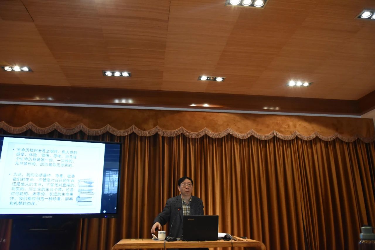 徐圻教授首先从“活,还是不活?”这个严峻的问题展开对生命话题的讨论。徐圻教授强调,生命是暂时的,甚至说是短促的、短暂的,死亡是生命的归宿。所以生命一开始就进入到了一个“悲剧”的进程,因为这是生命走向终结倒计时的开始。人生的所有价值和意义都以生命存在为前提,因此生命是第一位的。无论生命或长或短,或者惊天动地或者平淡无奇,都跟我们自然生命的获得(生)与失去(死)这个历程相关。生命历程完全是主观性的、私人性的感受、体验、领悟和思考,而且这个历程是唯一的、一次性的、无可替代的,因而弥足珍贵。为此,我们必须善待、尊重、敬畏我们的生命。不管是对自己的生命还是他人的生命,不管是对直接的、现实的、活生生的生命个体,还是对可能的、未来的、长远的生命事件,我们都应当抱一种珍重、崇奉和礼赞的态度。