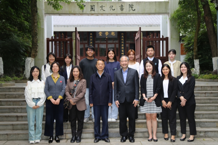 在中国文化书院,代表团一行参观书院大门前三大文化象征——孔子铜像、尹珍塑像、“贵山书院”石刻,了解中国传统文化特别是儒家文化的“仁爱、和谐、中正、和平”思想,了解贵州文化教育鼻祖尹珍首创务本学堂的历史贡献,了解贵州大学自贵山书院改制为贵州大学堂以来的百廿余年“书院-学堂-大学”历史与文化发展脉络。