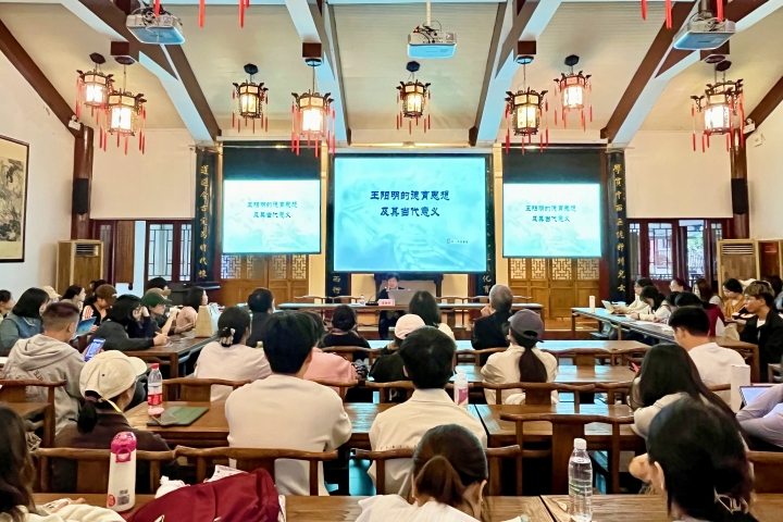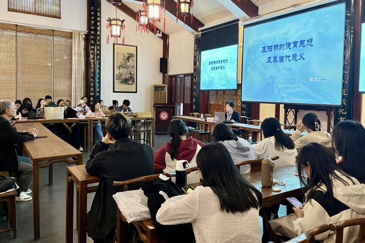 讲座中,龚妮丽老师结合自身经历以及一些生动形象的小故事,从王阳明“致良知”的德育宗旨、协调统一的德育理念及方法途径、王阳明德育思想的当代意义三个方面进行了全面的阐释,深入浅出地向听众呈现了王阳明的德育思想,探讨了德育思想对当下高校教育的意义。
