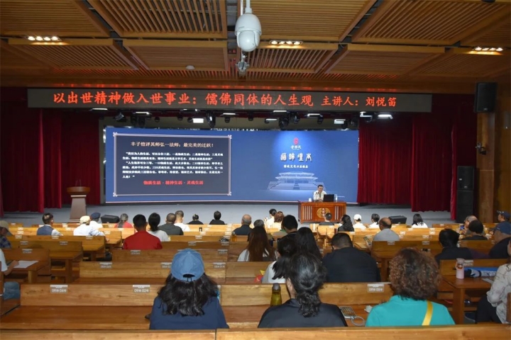 2024年6月2日上午,中国社科院哲学所研究员、中华文化促进会主席团荣誉委员、博士生导师刘悦笛应邀在贵阳孔学堂明德厅主讲第17场“溪山岳麓·大成心境”名家讲坛,主题为“以出世精神做入世事业:儒佛同体的人生观”。贵州大学哲学学院教授、贵州大学学报(社会科学版)副主编、贵州省美学学会会长、贵州大学中华传统文化与贵州地域文化研究中心兼任研究员方英敏担任学术主持人。
