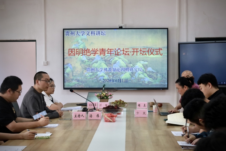 2024年6月1日上午,由贵州大学人文社科处、贵州大学哲学学院、贵州大学佛教量论因明研究院共同主办的“贵州大学文科讲坛·因明绝学青年论坛”开坛仪式暨第一讲如期举行。演讲嘉宾为哲学学院优秀校友、中国逻辑学会学术秘书、盐城师范学院马克思主义学院讲师汪楠博士,讲座题目为《从因明唐疏论证理论剖析藏传辩经》。讲座由中国逻辑学会因明专业委员会常务理事、贵州大学哲学学院讲师、贵州大学佛教量论因明研究院副院长汤伟博士主持。贵州大学佛教量论因明研究院院长顺真教授,贵州大学中国文化书院教师、贵州大学佛教量论因明研究院副院长方岚博士,学校、学院、研究院老师及哲学本硕博学生等参加了本次讲座。