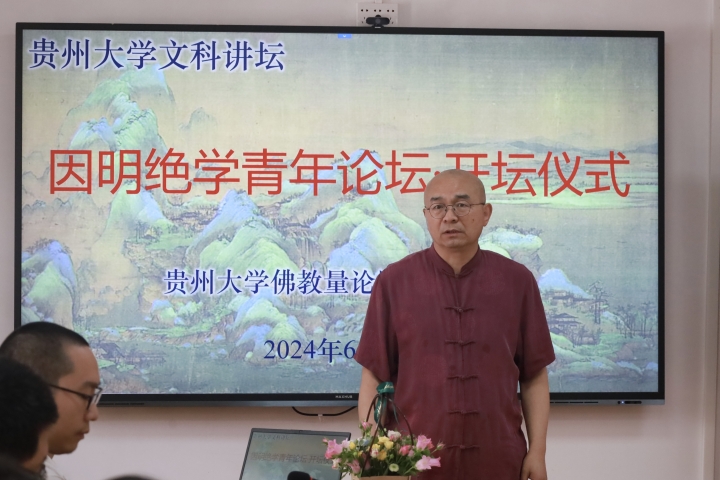 讲座首先举行了开坛仪式,由院长顺真教授致辞。他特别指出,贵州大学因明绝学研究在近几年取得较大进展。于此背景下,研究院在原有新疆笑厨食品有限公司赞助的“贵州大学因明论坛”之外,由学校人文社科处支持另外单设“贵州大学文科讲坛·因明绝学青年论坛”意义重大。该论坛旨在为学界因明绝学研究领域的青年才俊提供探讨最新研究进展及展示具有国际学术视野的前沿科研成果的平台,从而推动量论因明学界青年研究学者间的学术交流,进一步助力贵州大学因明学科建设及国家冷门绝学因明学术发展与因明绝学人才培养。