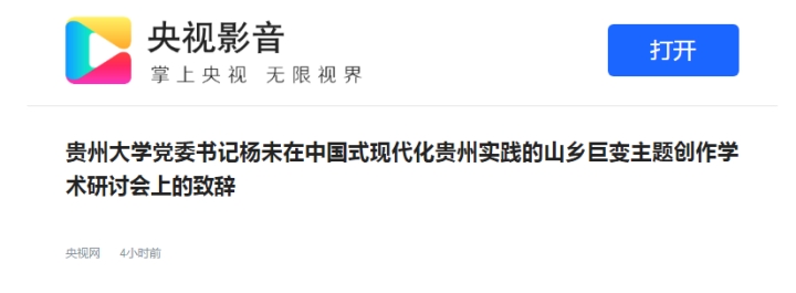 夏早日初长,南风草木香。今天,我们相聚在美丽的花溪水滨,百廿学府贵州大学,举行“黔进先锋,贵在行动——谱写中国式现代化贵州实践的山乡巨变”主题创作学术研讨会。在此,我谨代表贵州大学向出席活动的各位嘉宾表示热烈的欢迎,向长期以来支持贵州大学建设发展的各位朋友致以诚挚的敬意!
