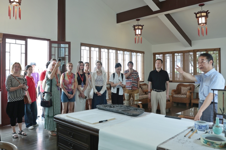 为秉承“发展海外华文教育,促进中外文化交流”宗旨、促进中华优秀传统文化海外传播,2024年7月24日上午,北京华文学院“拉脱维亚汉语和中国文化研修班”到贵州大学校史馆和贵州大学中国文化书院开展教学参观考察。贵州大学国际交流与合作处、欧美同学会相关负责人陪同参观考察并进行调研交流。
