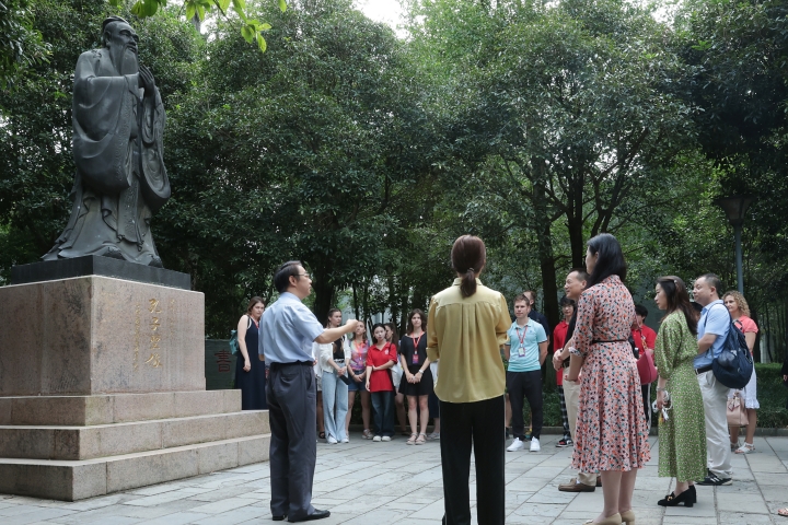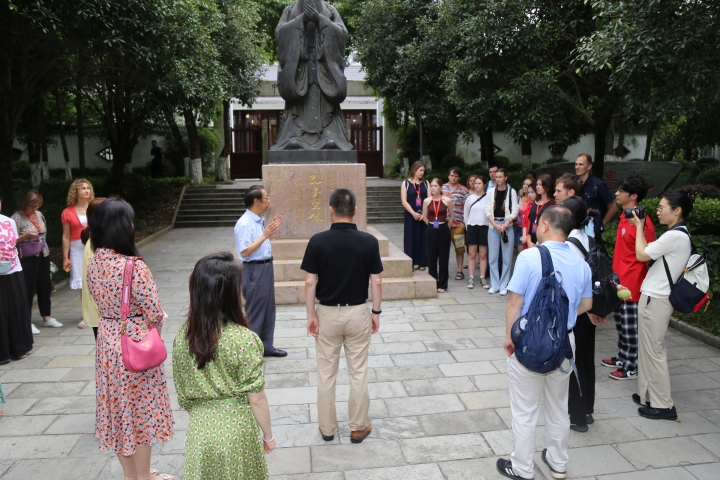 除在贵州大学校史馆考察了解学校百廿余年历史发展与近年发展成就之外,考察团通过参观贵州大学中国文化书院相关文化展陈并听取讲解,了解中华优秀传统文化有关仁爱、和谐、和平、中正的思想及对美好和谐与天下大同理想的不懈追求,了解中华文化“天人合一、身心合一、道器合一、知行合一”哲思,了解贵州教育文化历史发展及中国古代书院文化在现代大学中的传承与发展。