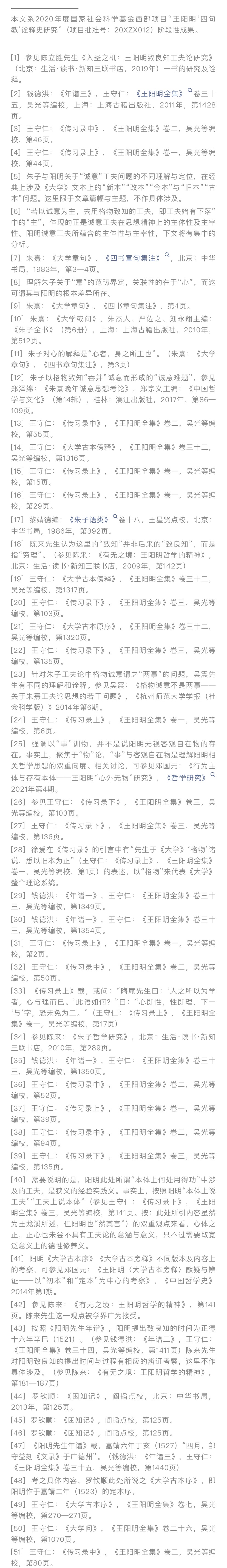 “工夫论”是阳明哲学的重要内容,是进入阳明思想世界,理解阳明心学的关键维度。就阳明生平及学思历程的节点来说,从早年“读书学圣贤”为人生第一等事,到“龙场悟道”后提出“知行合一”,再到晚岁在教法上强调“彻上彻下”“四句教”,足以表明工夫及工夫论是阳明心学形成发展的根本所在,工夫论可谓阳明心学的焦点论域。归结到阳明平生学问宗旨“致良知”及整个思想体系上,与其谓之为一种纯粹的学说理论,毋宁说是一种工夫论意义下的“入圣之机”,诸多命题从工夫论的视域能获得更深刻的理解。[1]在将阳明心学定位为工夫论的自觉意识下,无论是基于《大学》这一经典文本,还是聚焦阳明工夫论视域本身,“诚意”无疑是其中最值得关注的论题。诚意是考察阳明工夫论,展现阳明工夫论内涵与精神,进而把握阳明心学思想宗旨的核心内容。本文即紧扣相关文本及论述,对阳明诚意工夫论作系统全面考察,揭示阳明诚意工夫论的核心论点、立论精神、理论特质与思想定位,期望能够丰富和推进阳明心学的研究。