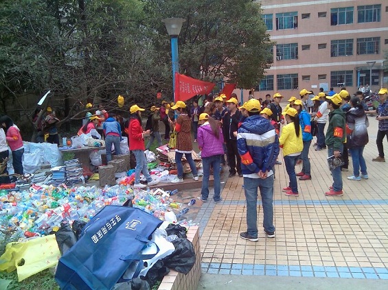 活动一直持续到下午一点,在志愿者们的团结合作下,回收的废旧品堆成了一座小山。 “这是我第一次参加回收废品的活动,虽然有点累,但是想到这可以帮助贫困山区的小朋友们,就觉得值得了。其实我还想去那里支教,我会跟我们部长说,看能不能有这个机会。”一位青协成员如是说。