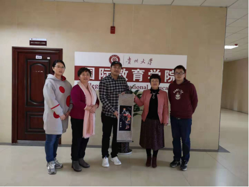 庞生夫妇(右一、右三)与国际教育学院的老师合影留念