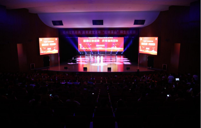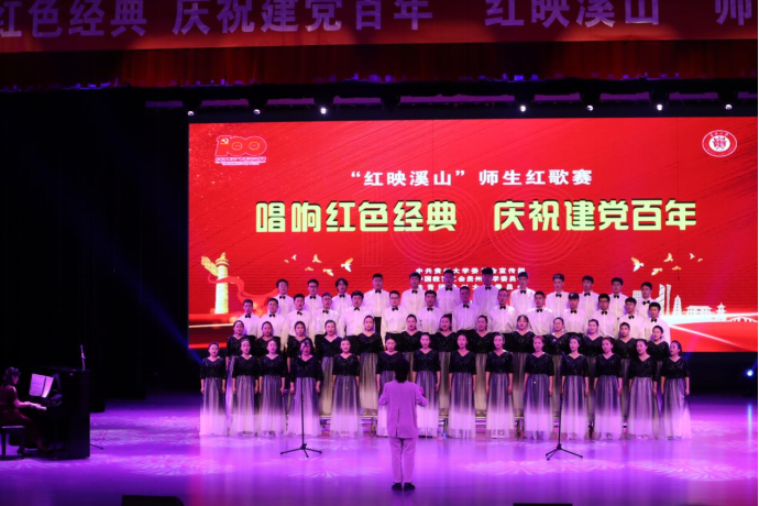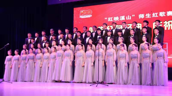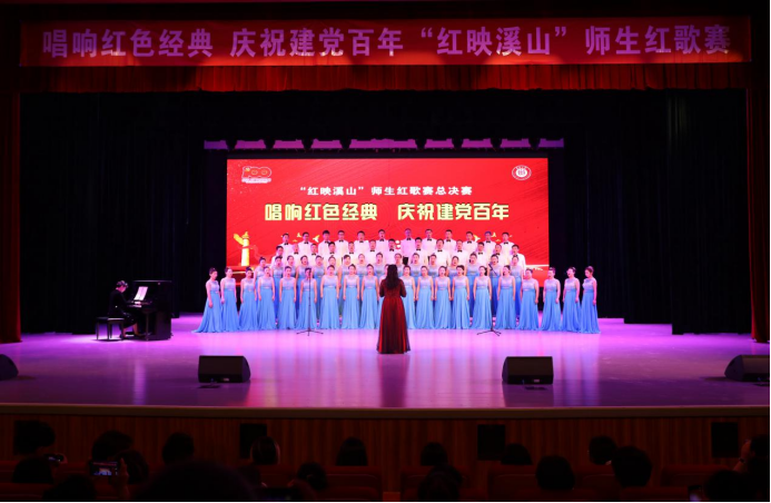 为庆祝中国共产党成立100周年,唱响爱党爱国爱社会主义的主旋律,重温红色经典,传承红色基因,我校于6月17日至18日在西校区雅文楼小剧场举办“唱响红色经典,庆祝建党百年‘红映溪山’”师生红歌赛。