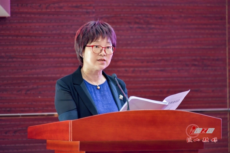 图为校党委副书记令狐彩桃通报贵州省2021年度综合考核结果