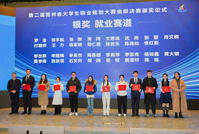 经过激烈角逐,最终我校关皓元、王哲获第二届贵州省大学生职业规划大赛成长赛道金奖,罗淦、沈燕获第二届贵州省大学生职业规划大赛就业赛道银奖,杨紫嫣、章皓轩获第二届贵州省大学生职业规划大赛成长赛道铜奖,陆佳俊、黄显蕊、李思怡、李芳碧获第二届贵州省大学生职业规划大赛就业赛道铜奖。
