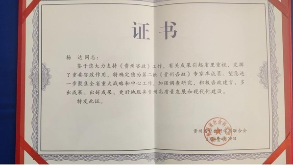 2024年4月28日,贵州省社会科学界联合会公布第二批《贵州资政》专家库成员名单,我院副院长(主持工作)杨达教授成功入选,体现了省社科联对杨达教授在社会科学研究领域的重要贡献和广泛影响力的肯定。