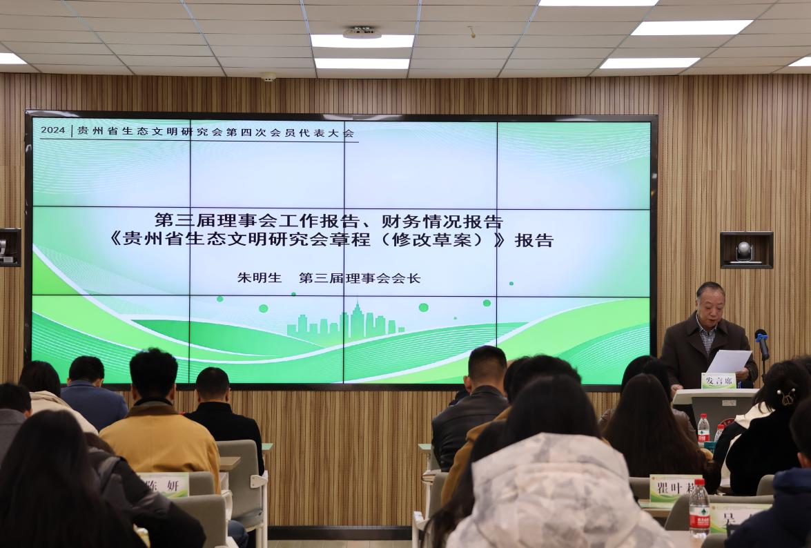 随后,第三届理事会会长朱明生同志作工作报告、财务情况报告及《贵州省生态文明研究会章程(修改草案)》报告,全面回顾了贵州省生态文明研究会过去几年在贵州省生态文明建设领域取得的工作成就和成功经验,并对未来工作方向提出了新的要求。