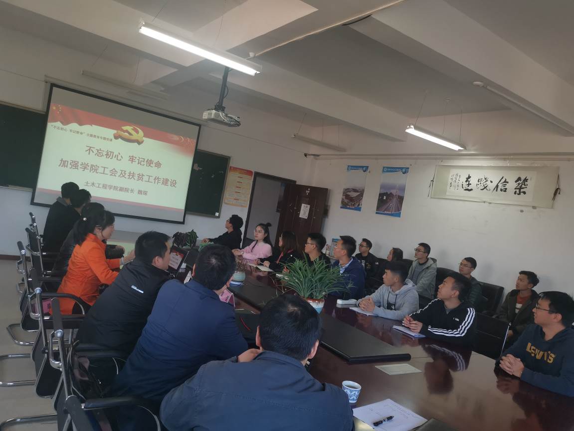 【副院长魏琛上专题党课1031中午,土木工程学院党委在土木401会议室举行“不忘初心、牢记使命”主题教育专题党课。副院长魏琛以“不忘初心 牢记使命 加强学院工会及扶贫工作建设”为题上专题党课。院领导覃昆,学院行政及部分教师、研究生、部分教工支部书记、研究生党总支成员、本科生党总支成员30余人参加。