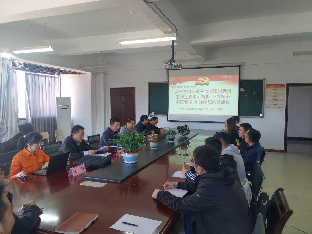 【院党委副书记、院长赵瑜上专题党课1031中午,土木工程学院党委在土木401会议室举行“不忘初心、牢记使命”主题教育专题党课。院党委副书记、院长赵瑜以“深入学习习近平总书记对贵州工作重要指示精神 不忘初心 牢记使命 加强学院内涵建设”为题上专题党课。院领导魏琛、谢涛、唐晓玲,学院组织员,各科室(系、部、中心)负责人、教授代表、新进博士、学生代表30余人参加。专题党课院党委副书记覃昆主持。