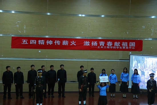 5月9日晚,土木工程学院学生事务中心在建筑与城市规划学院218报告厅举行“五四精神传薪火,激扬青春献祖国”配音话剧大赛。学院辅导员李莹,党总支代表袁凌志,青年志愿者协会代表张翼达,团委学生会代表江强,学生事务中心主任胡必瑶、王惠琳、李小雨、孙亮以及土木工程学院学生300余人参加活动。