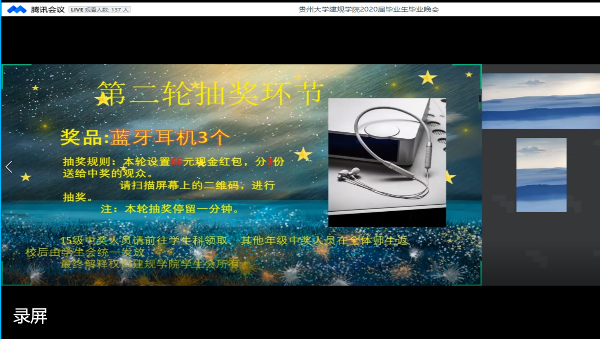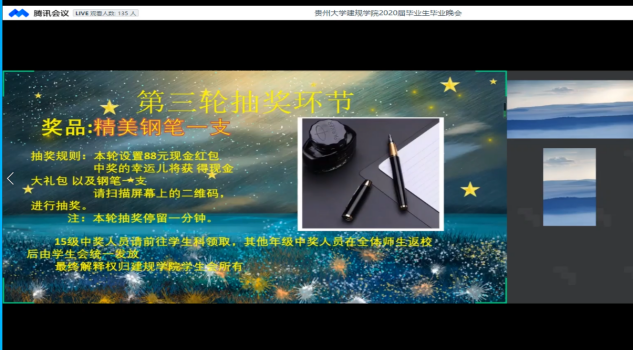 在晚会将要落下帷幕的时刻,学生会精心为毕业生准备的学生会彩蛋在屏幕上亮起,一句句美好的祝福,一声声温馨的问候,是来自学弟学妹们对毕业学长的最美好的祝愿。在场的毕业生们也为学院能在如今疫情紧张的情况下为大家准备精心的晚会而无比激动。