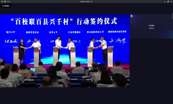 9月7日,国家乡村振兴局、清华大学在山东省威海市文登区联合举办“百校联百县兴千村”行动启动仪式,贵州大学副校长周少奇教授、对外合作处副处长黄剑教授、建筑与城市规划学院党委书记余压芳教授等以线上形式参加会议,榕江县人民政府作为贵州大学的结对签约县作经验交流的书面发言。