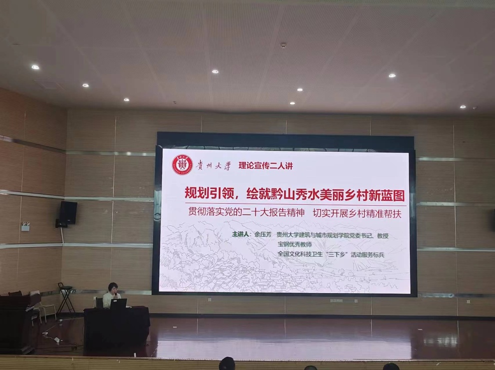 爽爽贵阳,叶绿蝉鸣,7月4日下午,“规划引领 绘就黔山秀水和美乡村新蓝图”理论宣传二人讲在建筑与城市规划学院217报告厅开讲,学院领导班子和部分师生共计60人参加宣讲活动。学院党委书记余压芳教授和马克思主义学院张卓老师为主讲人,余压芳教授主持宣讲。