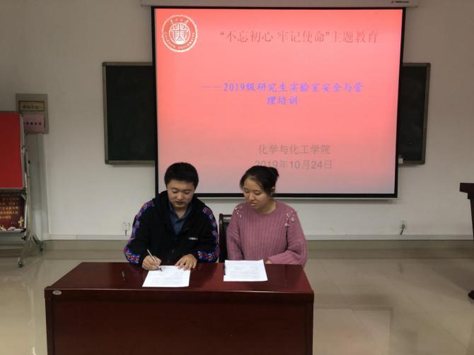 朱必学副院长代表学院与研究生导师签订了实验室安全责任书,李洋老师代表导师与研究生签订了实验室安全责任书。