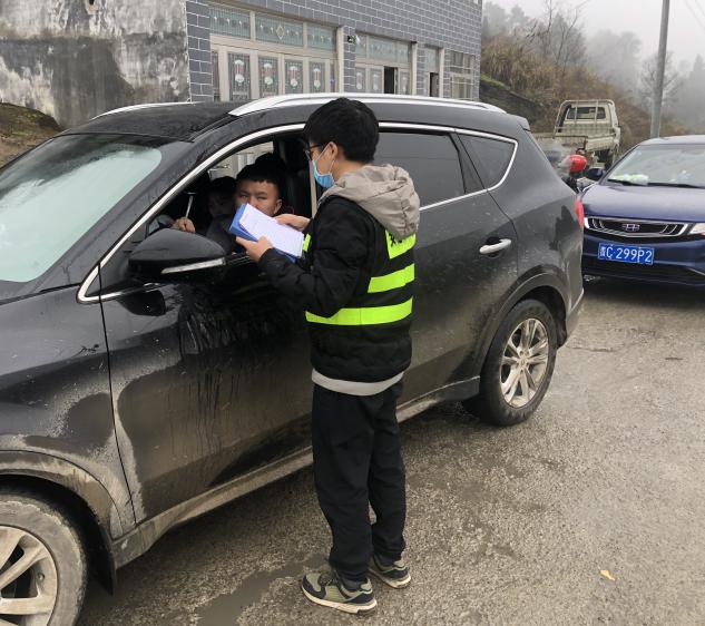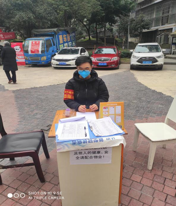 在志愿服务中,谭孝伟同学积极配合居委会工作人员在社区内挨家挨户排查有无由湖北进入外地人员,排查有无与湖北回区人员接触的本地居民,排查有无发烧咳嗽的居民,并据此做好每户的《万州区疫情排查表》;其次,他还积极向社区居民介绍新冠肺炎知识,宣传新冠病毒的危害性,引导劝诫居民少外出、不聚餐、勿扎堆,尽量居家隔离,为防疫抗疫做贡献;除此之外,他还在社区设立的“治安卡点”对进出人员进行登记并做体温检查,每天下班前向社区居委会进行工作汇报。