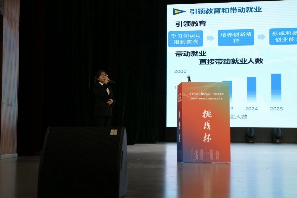 接着,校团委副书记杨晓椿介绍“挑战杯”赛事概况、项目流程、注意事项等,播放了获奖项目的路演视频;随后,化学与化工学院的冯丽君同学进行《荧荧之光,纤尘不染”—长余辉蓄能发光自清洁涂料》作品的路演展示。