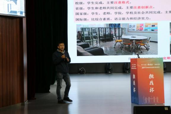 化学与化工学院副院长刘飞从双创工作宣传、参赛作品收集、作品院级初赛、团队路演演练和项目答辩推荐共五个部分作第十八届“挑战杯”竞赛的工作推进安排,鼓励全体师生乘风破浪,携手创造辉煌佳绩。