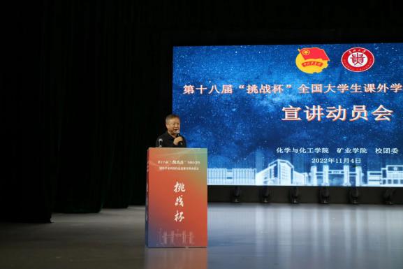 首先,矿业学院党委书记张林作动员讲话。他表示,此次宣讲动员会由两个学院联合举办,是增强学院之间相互学习、相互促进的一次活动。借助第十八届“挑战杯”在贵州大学举办这样一个良好机会,营造更加浓郁的双创氛围,将科研与竞赛相结合,提升教师的教学方法和学生的科研创新能力,并且要展示出贵大人的精神风貌,打造出一张闪亮的名片。