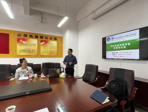 随后,胡笑添教授从“评审概要”、“申报要领”、“申报体验”、“基金研究”等角度,结合自身多年国家科学基金申报和评阅经验,深入浅出地对国家自然科学基金申请的资助政策、现实形势和评议要点展开分析。同时,还从申请人的角度对青年项目和面上项目的申请要领作了细致解说,并着重强调选题多从评阅人的角度考虑问题,要有学术价值和创新性,注重充分利用申请人的研究基础。胡教授结合个人申请体验及自身科研的发展历程,勉励青年教师要做到“立足创新,思路清晰,定位精准,精益求精”,不断选择和深化自己研究方向,才能进一步提高国家自然科学基金申报书的质量。