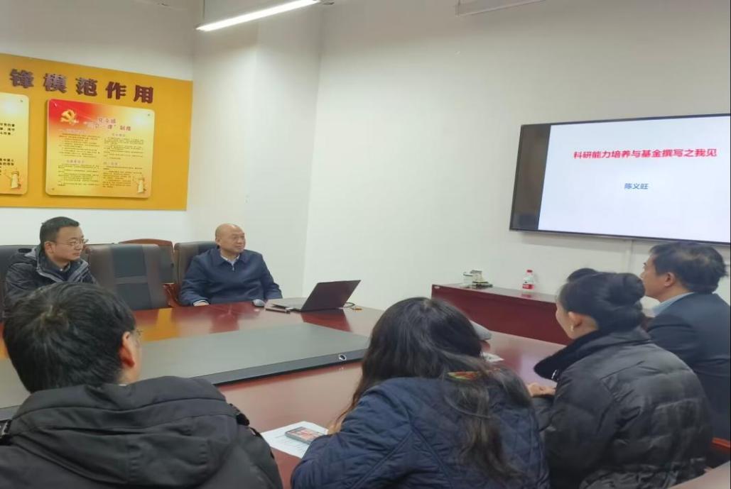 为加快推进学科建设,拓宽学术视野,活跃学术氛围,促进学术交流,推动人才队伍建设,2023年12月16日上午,赣南师范大学校长陈义旺教授在励学楼会议室为我校青年教师开展“科研能力培养与基金撰写之我见”学术交流。贵州大学副校长张大林、贵州大学化学与化工学院党委书记杨静、副院长朱必学、副院长肖仁贵、副院长吕梦岚、副院长刘飞以及化学与化工学院、材料与冶金学院、药学院部分青年教师40余人参会。贵州大学副校长张大林对陈义旺教授拨冗为学校青年教师辅导表达诚挚谢意。