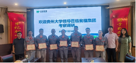贵州天福化工有限责任公司副总经理邹兴华从自身在公司的发展历程,谈到了人才培养的举措,希望双方以实习基地规范建设为契机,加强深度合作,为社会输送更多符合社会需求人才。