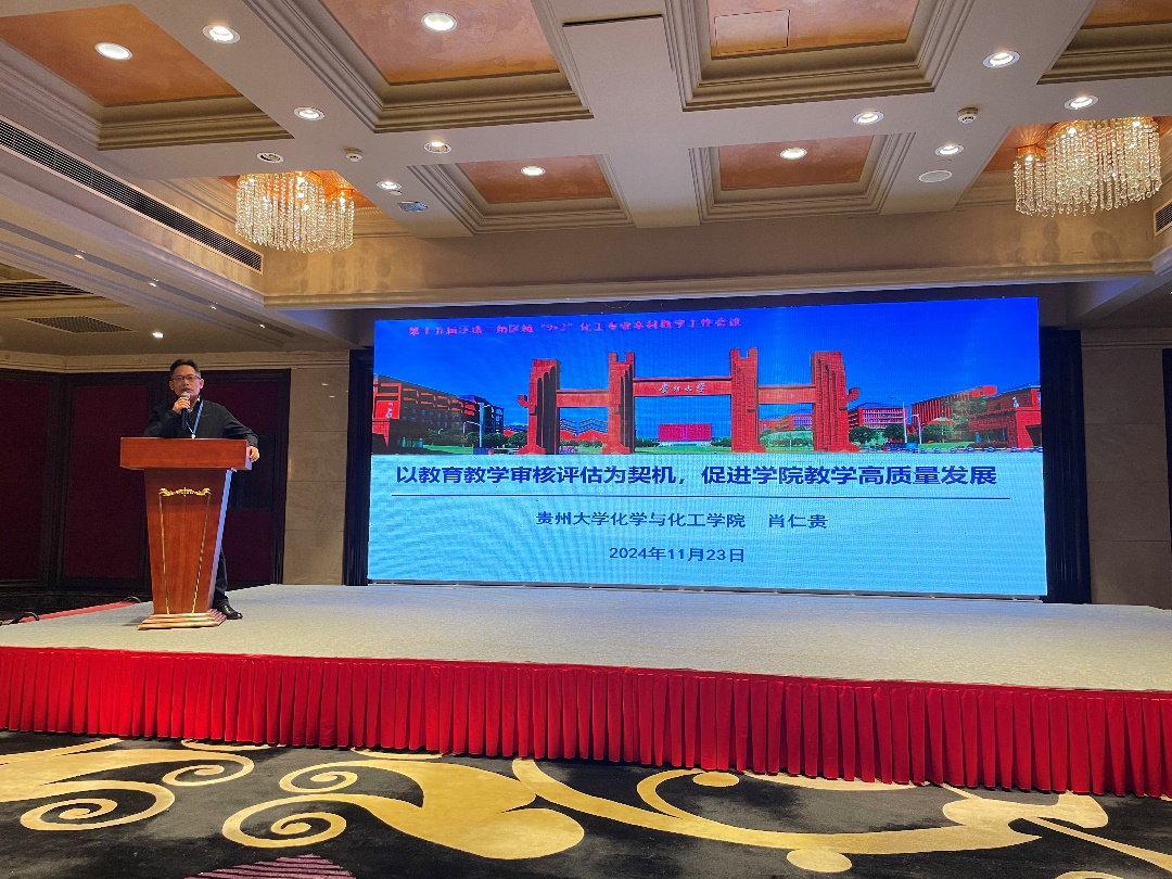 期间,肖仁贵副院长以“以教育教学审核评估为契机,促进学院教学高质量发展”为题作了报告。肖仁贵副院长详细介绍了学院发展历史、学科建设、专业建设及教师队伍现状。化学与化工学院作为贵州大学具有深厚学术底蕴和卓越教学实力的二级学院,一直致力于培养高素质的化学化工专业人才。在本科教学方面,学院拥有一支秉持严谨教学态度和创新教学理念的优秀教师队伍,为学生的成长和发展奠定坚实的基础。