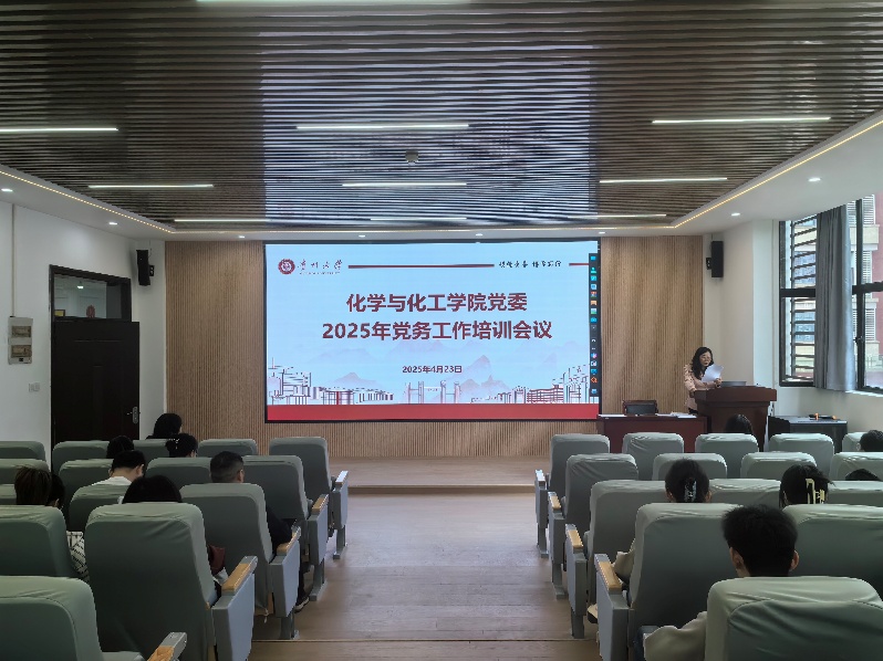 2025年4月23日中午14:00,化学与化工学院党委在学院235报告厅召开党务工作培训会,旨在进一步规范学院党务工作,提升基层党支部工作质量与效率。会议由党委书记杨静主持,党支部全体支委参加。