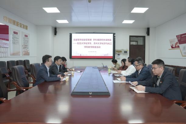 4月27日上午,复旦大学化学系党委与贵州大学化学与化工学院党委在化学与化工学院231会议室开展联学联建活动。贵州大学化学与化工学院党政班子成员、复旦大学化学系系主任周鸣飞、复旦大学化学系党委副书记侯军利、复旦大学科学技术研究院产学研合作处处长李伟以及教师代表参加活动。本次活动由贵州大学化学与化工学院党委书记杨静主持。