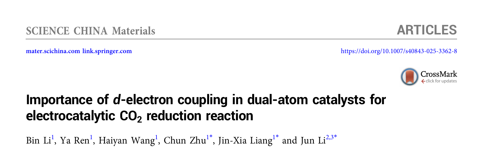 该工作以“Importance ofd-electron coupling in dual-atom catalysts for electrocatalytic CO2reduction reaction”为题发表在《Science China Materials》(中科院一区期刊、影响因子6.8)。论文的第一作者为贵州大学化学与化工学院2022级硕士研究生李斌。