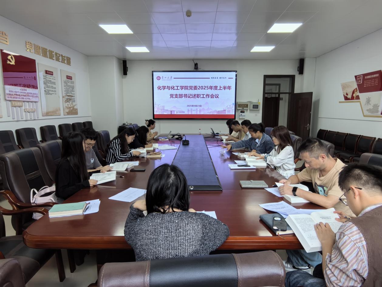为深入学习贯彻习近平新时代中国特色社会主义思想,加强基层党组织建设,9月23日中午1点,化学与化工学院召开了2025年上半年党支部书记述职工作会议。学院党委书记杨静、党委副书记方芳以及全体党支部书记参加了此次会议。会议由党委副书记方芳主持。