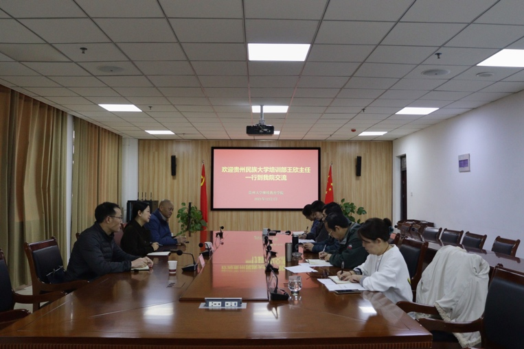 12月1日上午,贵州民族大学培训部主任王欣、副主任高冰等一行到访,与我院相关领导及负责人开展积极交流座谈。会议就新时代继续教育怎么办展开讨论。学院院长任康民、党委副书记丁韬出席会议,相关部门负责人参加会议。