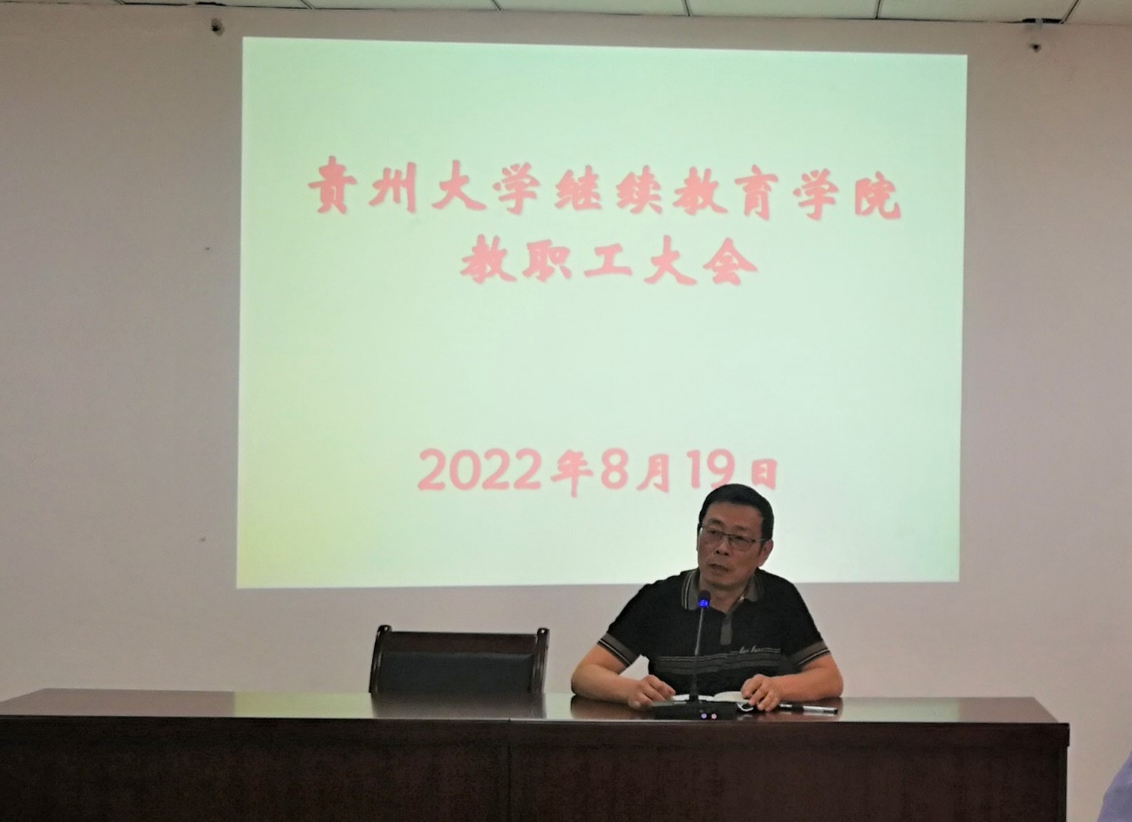 8月19日,继续教育学院2022秋季学期第一次教职工大会在306室召开,学院领导及全体教职工参加,院长任康民主持会议。