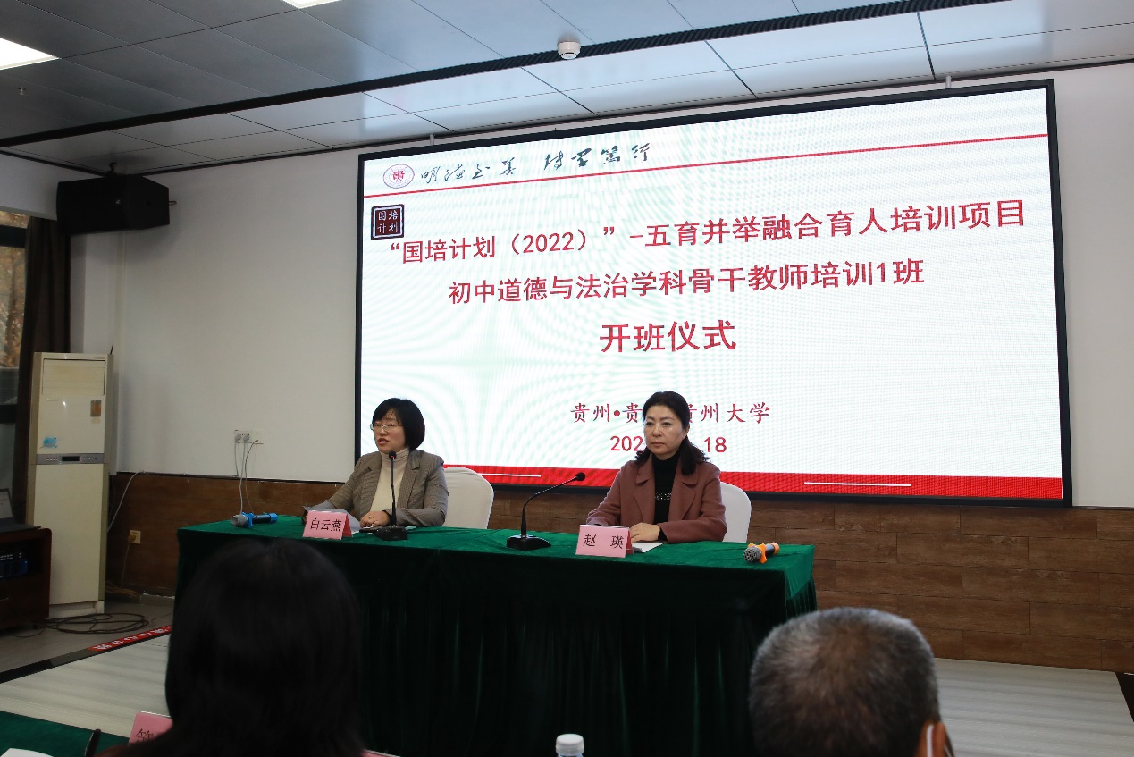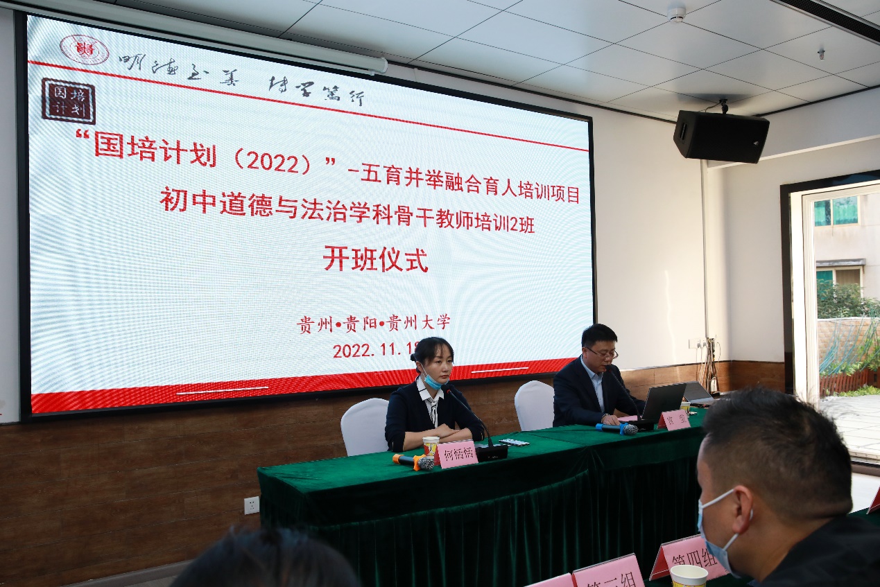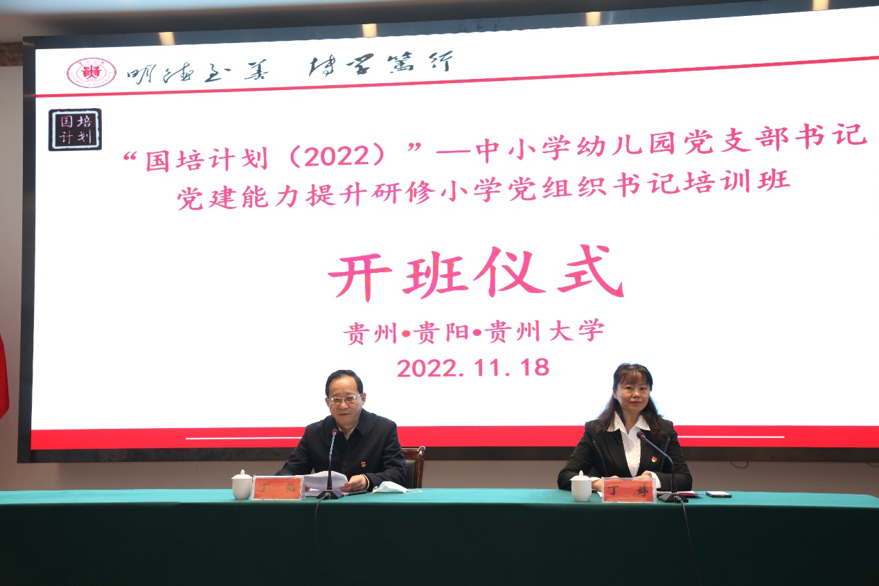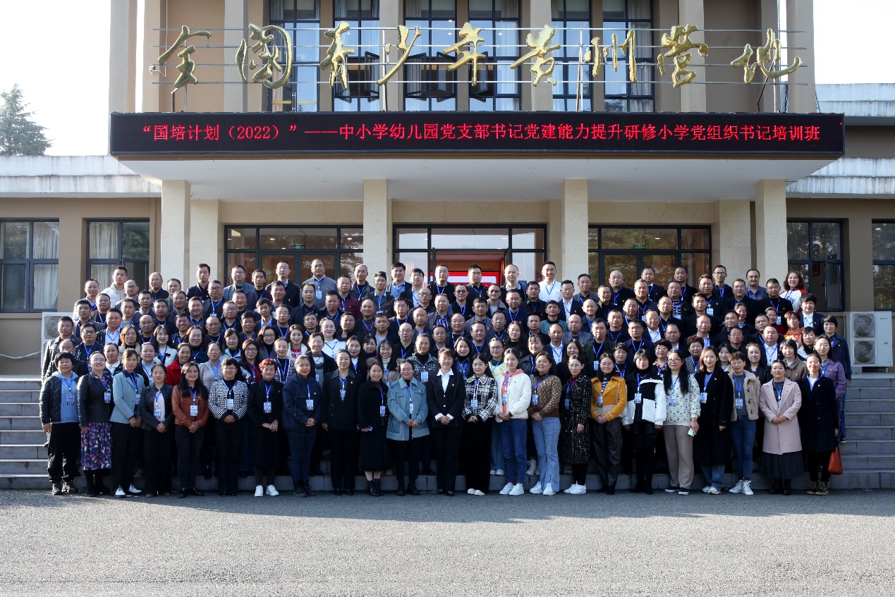 11月18日,“国培计划(2022)”-中小学幼儿园党支部书记党建工作能力提升研修培训班(小学段第二期)、“国培计划(2022)-五育并举融合育人培训项目小学道德与法治学科骨干教师培训班(第二期)”分别在花溪区全国青少年贵州活动营地、贵州大学南校区顺利开班,学院党委副书记丁韬及相关部门负责人出席开班仪式致欢迎辞,来自贵阳市、安顺市、六盘水市等地区的430余名老师参加仪式并合影留念。