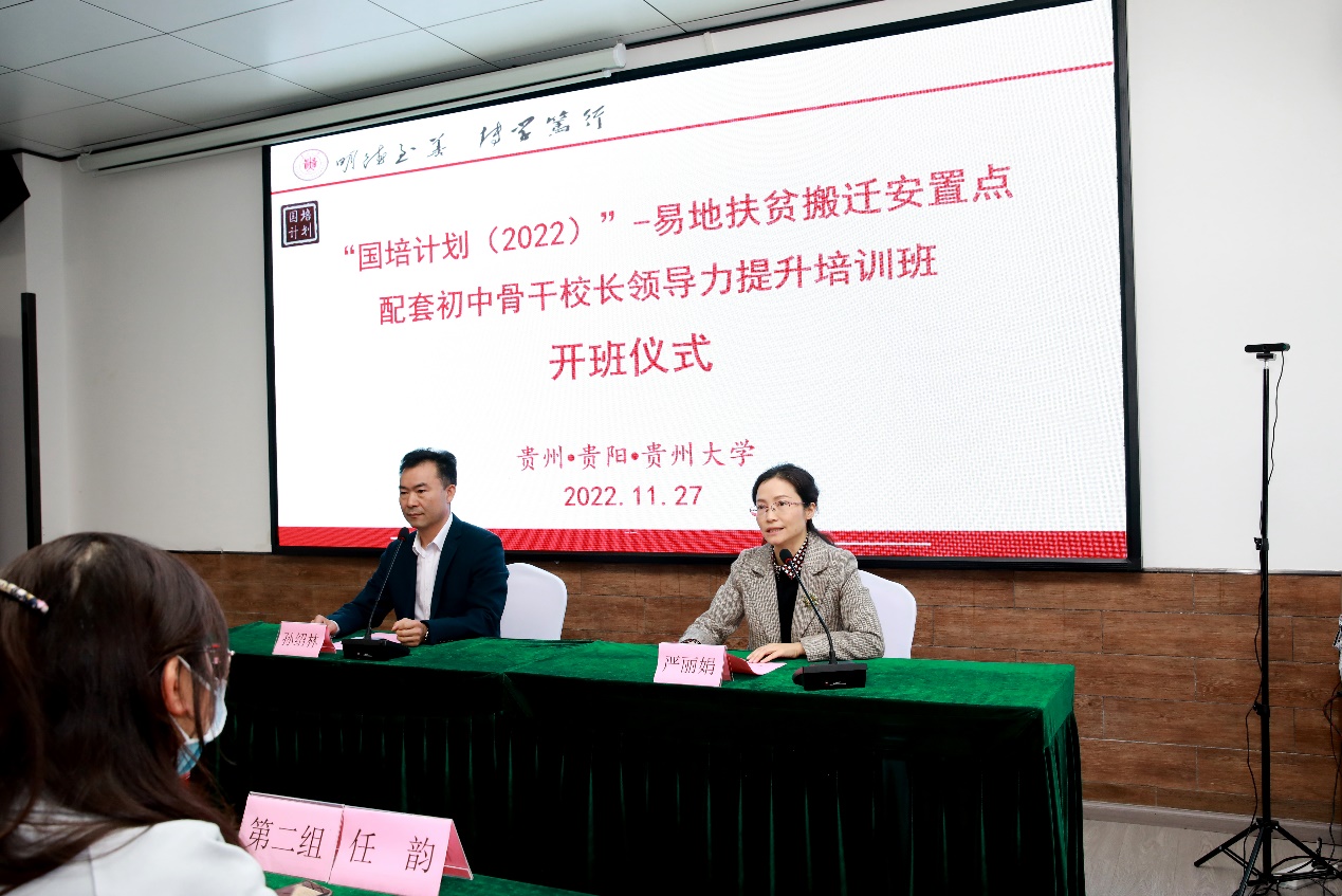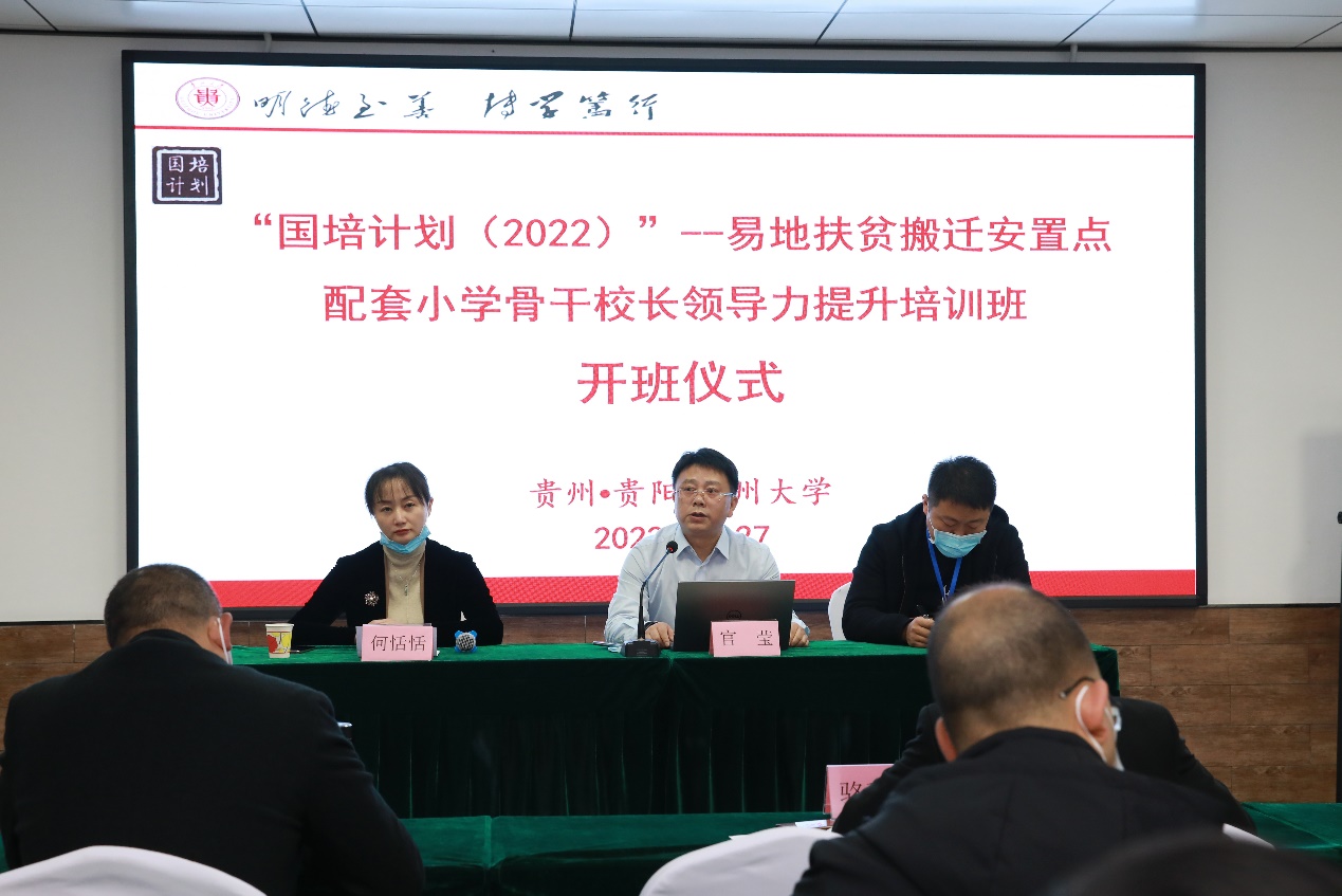 11月26日,在冬日暖阳下、花溪河畔旁,国培计划-2022易地扶贫搬迁安置点配套学校骨干校长领导力提升培训在贵州大学南校区举行。学院教育行业继续教育中心主任官莹、职业培训中心孙绍林、教育行业继续教育中心副主任丁婷等项目团队成员与来全省各地150余名易地扶贫搬迁安置点配套学校骨干校长们共同为培训的开启拉开帷幕。