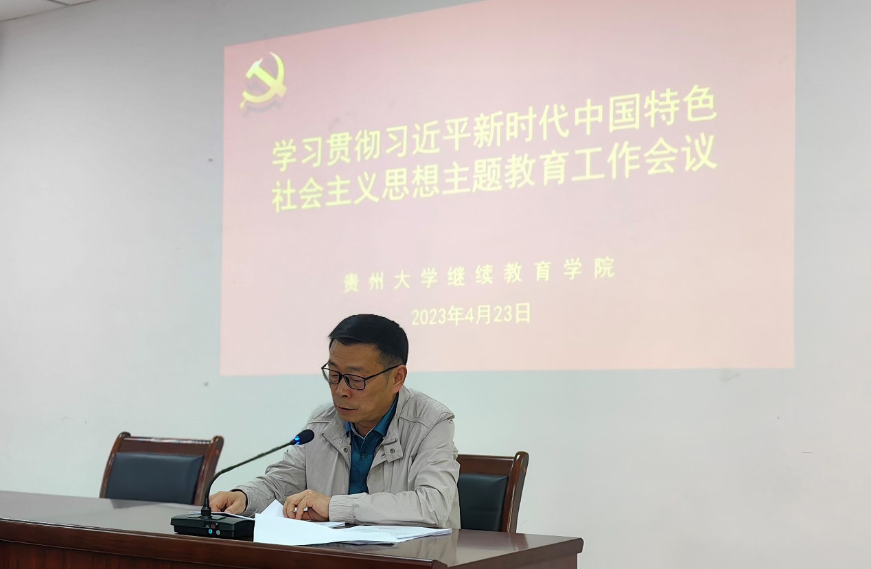 白林立指出,学院要从“深刻把握开展主题教育的重大意义”、“对标对表,高质量开展好主题教育”、“抓组织落实,确保主题教育取得实效”三个方面做好主题教育工作。他要求,学院党委、党支部、全体党员要严格按照《中共贵州大学委员会关于深入开展学习贯彻习近平新时代中国特色社会主义思想主题教育的实施方案》开展相应工作,切实用党的创新理论统一思想、统一意志、统一行动,把理论学习成果转化为加快推动继续教育转型升级的实际行动,服务于学校建设国内一流、国际知名的综合性高水平大学的总体目标,为新时代新征程服务贵州高质量发展和现代化建设作出新的更大贡献。