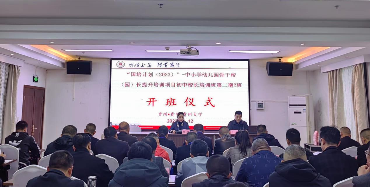 10月12日上午,贵州省2023年“国培计划”-中小学幼儿园骨干校(园)长提升培训项目初中校长培训班(第二期)在贵州大学南校区开班,来自贵阳市、遵义市、毕节市、安顺市、铜仁市的131名初中骨干校长参加,将分为两个班组织实施教学。