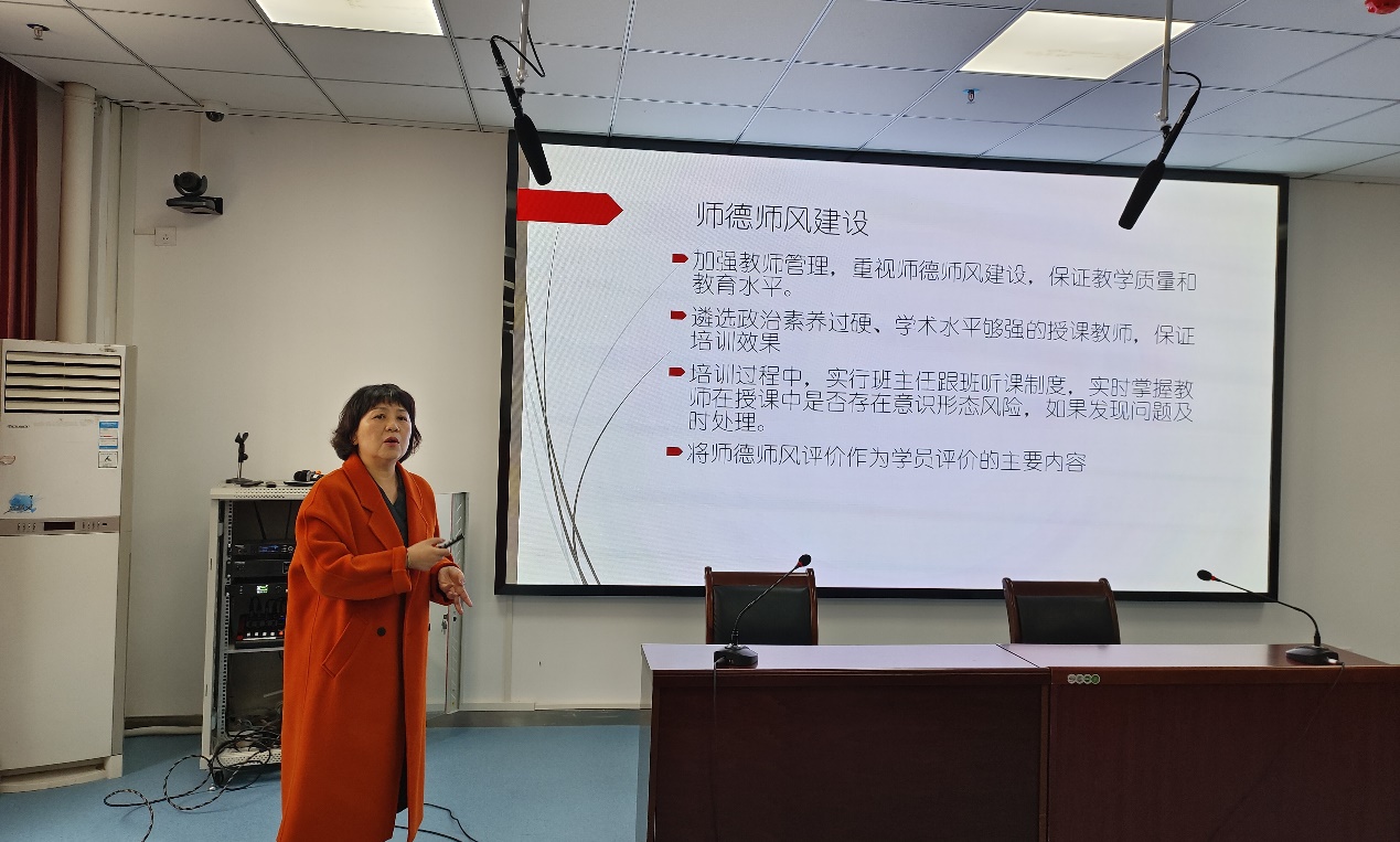 李飏以“加强思政教育 提升培训品质——将思想政治教育融入到培训全过程”为题作宣讲,就如何在培训实践全过程中,从教学内容设计、导学、授课教师遴选与评价、严格培训纪律入手,融入思政教育做了分享。