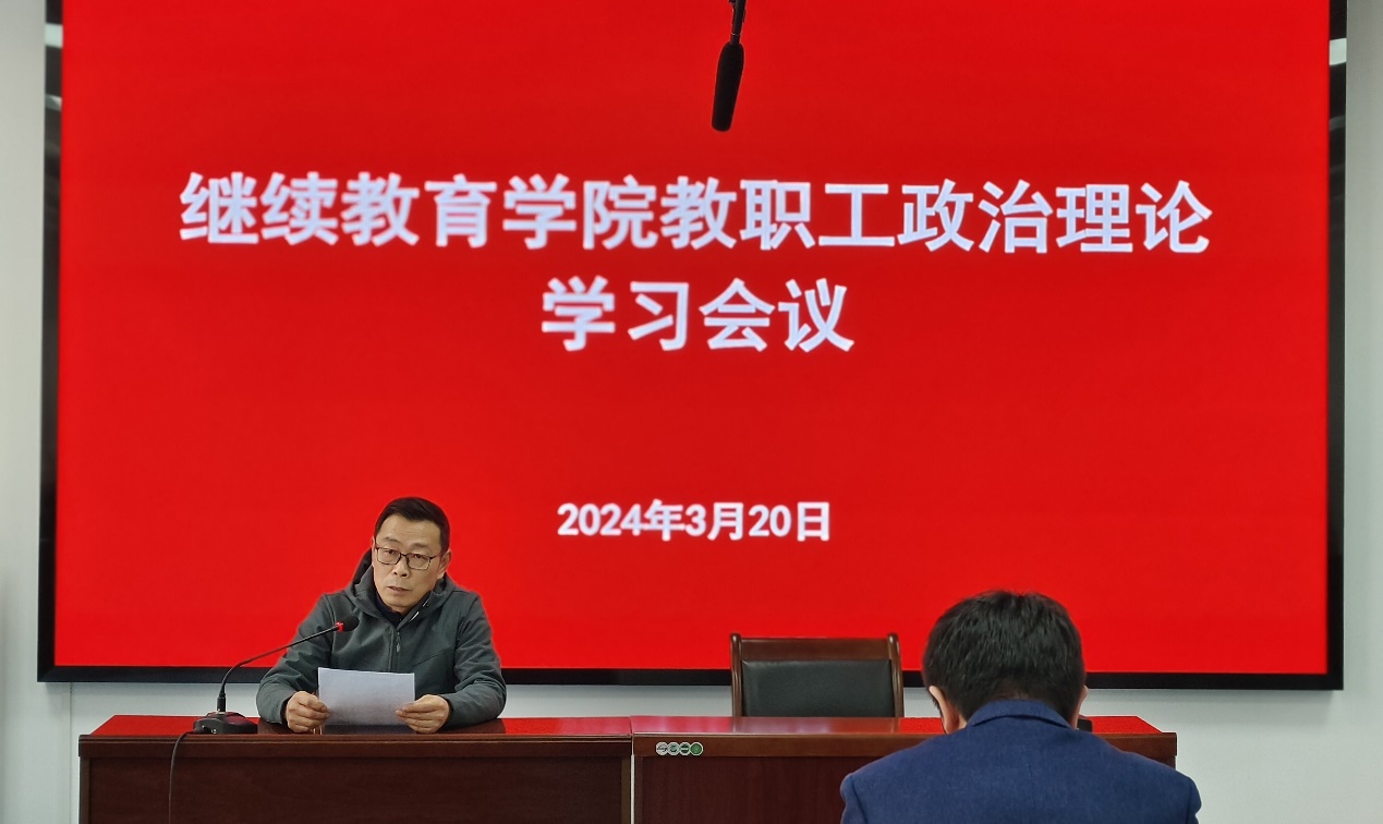 3月20日,学院教职工政治理论学习会议在408室召开,会议主要围绕“重温习近平总书记‘3·18’重要讲话精神、落实立德树人根本任务”开展。学院党委领导班子成员、正处级组织员及全体教职工参加,党委书记白林立主持学习。