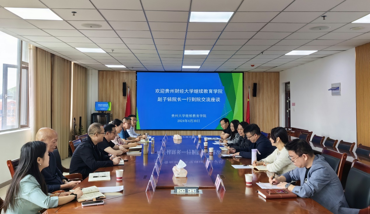 4月30日,贵州财经大学继续教育学院院长赵子铱、副院长赵之友一行到我院交流座谈,座谈会在610会议室举行,学校非学历教育管理专班负责人付芳、学院党委书记白林立、相关部门负责人参加座谈。双方就学历继续教育、非学历继续教育相关问题进行了积极的交流与探讨。