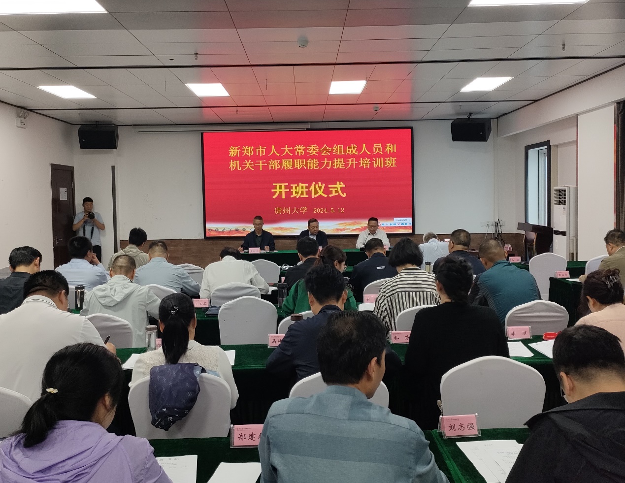 5月12日,受新郑市人大常委会委托,我院安全培训中心承办的新郑市人大常委会组成人员和机关干部履职能力提升培训在贵州大学顺利开展。在开班式上,新郑市人大常委会主任、党组书记任大同,副主任、党组成员左建新,我院安全培训中心副主任胡舫(主持工作)出席仪式并分别讲话、致辞、作培训纪律要求,班主任谭文雄老师主持开班式。