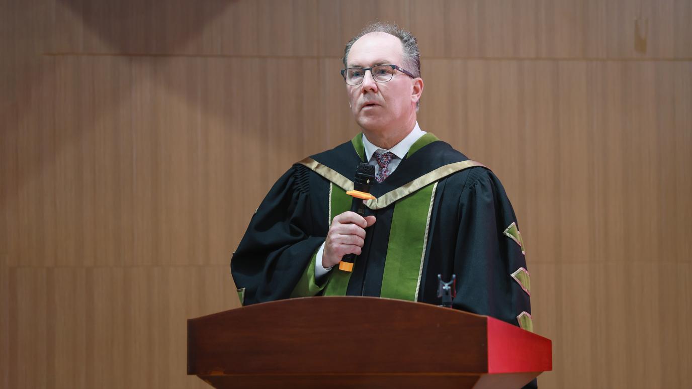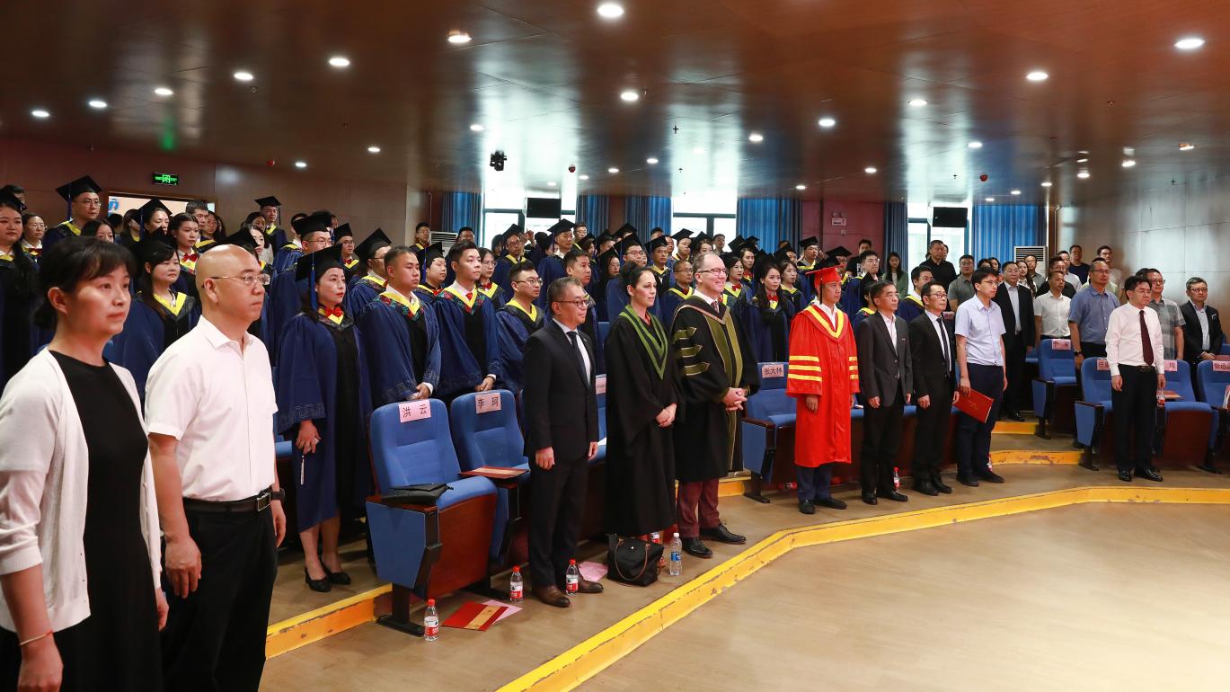 典礼第一阶段,张大林副校长向获得学位的96位同学表示热烈的祝贺,并从做人、做事两方面跟同学们分享了三句话,分别是三个“我知道”、六个“有”和两个词。他说;“我知道我知道的很少,我知道我没那么重要,我知道我没有你赞美的那么好。牢记这三条,我们永远不要忘了我是谁,这是我们守住底线的根本。”Ghislain Samson校长向毕业生表达了祝贺,他的精彩致辞语重心长,时时鞭策MPM学子在人生的道路上奋勇前行。