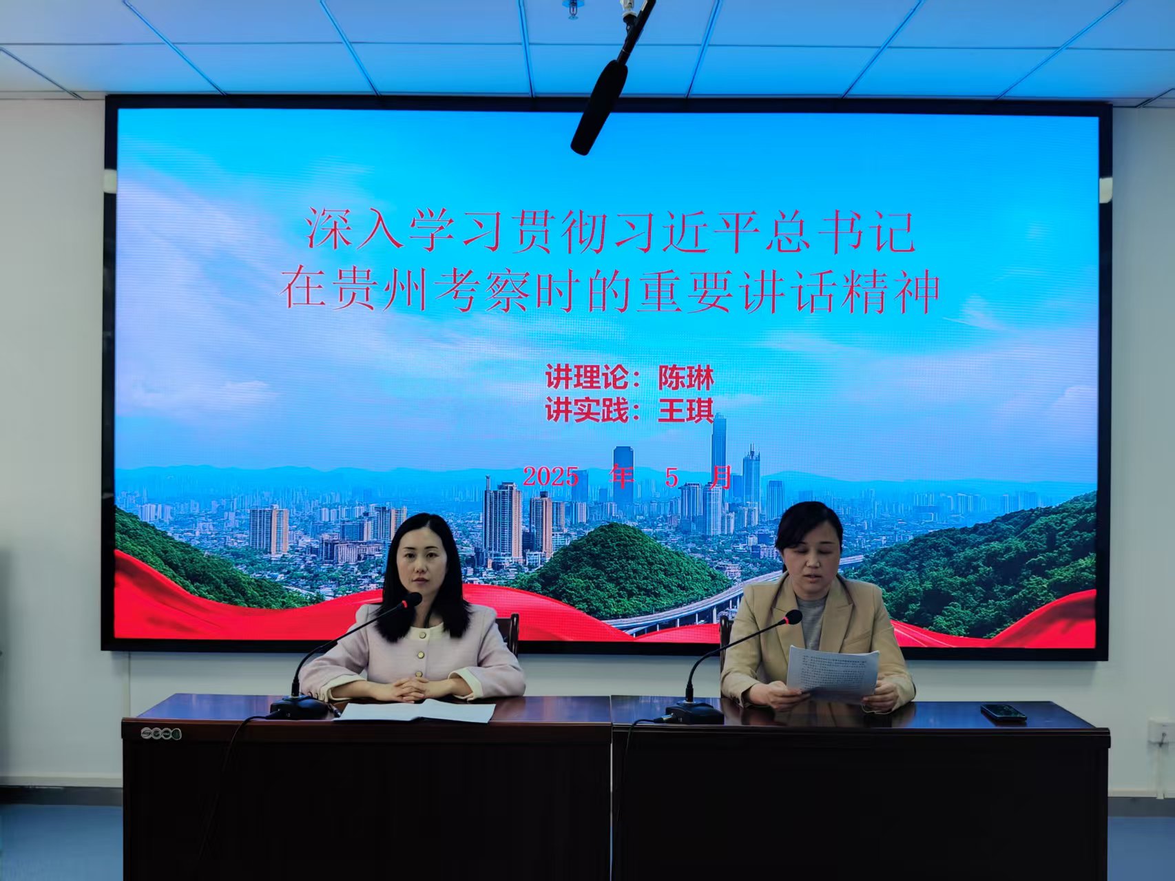 学院党委书记王琪讲实践,通过大量的数据、事例、资料介绍了新时代以来贵州“巨变”,帮助大家深刻领悟习近平总书记在贵州考察时的重要讲话精神对贵州一以贯之的方向指引和对贵州新发展的实践要求。