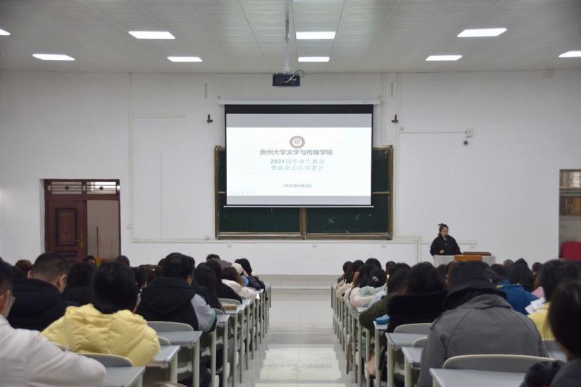 为加强2021届本科毕业生教育管理工作,3月5日,文学与传媒学院在东校区法学楼101教室召开2021届本科毕业生教育暨就业部署会。院党委书记李开学、副书记、院长谭德兴、副书记董蔚然、副院长唐娟出席会议。2021届全体本科毕业生参加会议。会议由辅导员王婷婷主持。